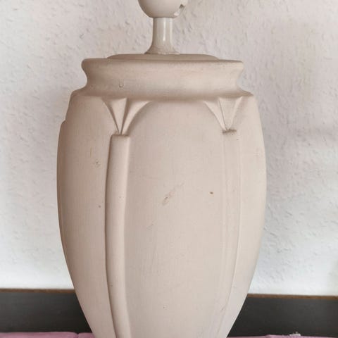 Fin keramisk bordlampe, med behageligt lys. Lampen har en kugleformet bund og en flaskehalsformet top, der giver den et elegant og moderne look. Overfladen på lampen er pixelleret og ser ud som en genstand taget direkte fra Minecraft. Lampen måler ca. 33 cm i højden og er en funktionel og dekorativ tilføjelse til ethvert rum.