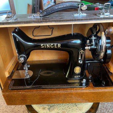 Det unikke design og de fine detaljer på maskinen vidner om en tid, hvor håndværk og æstetik gik hånd i hånd. Det er tydeligt, at denne symaskine har været et stykke, man var stolt af at eje og vise frem, måske endda ved særlige lejligheder.