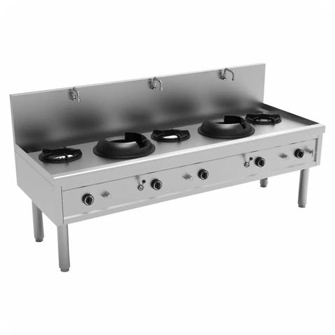 Det specielle design af 3+2 rørbrændersystemet sikrer en højere ydelse og en mere effektiv madlavning. En top med splashback på 400 mm holder eventuelle stænk og sprøjt inde i wokken, hvilket bidrager til et rent og ryddeligt køkkenmiljø.
