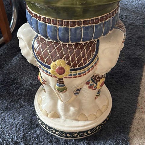 Denne smukke elefant lanterne / lysestage er et dekorativt element, der har flotte mønstre og tegninger på dens overflade. Den måler ca. 20 cm i længden og 12 cm i højden, og har en åbning i bagenden, hvor man kan indsætte et fyrfadslys. Den kan give en hyggelig og stemningsfuld belysning, når lyset er tændt og skinner igennem elefantens mønstre og åbninger. Elefant lanterne/lysestage er lavet af metal. Med dens unikke design og flotte mønstre kan den være en god tilføjelse til hjemmet, eller som en gave til en elefant-elsker.