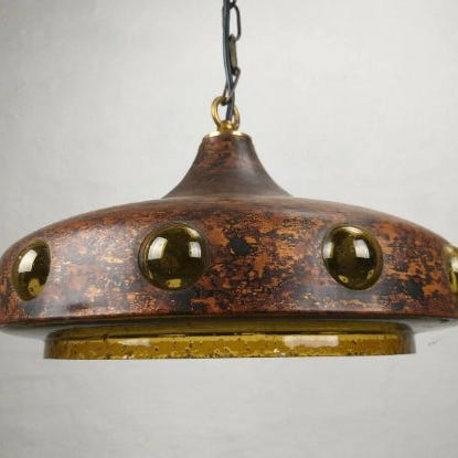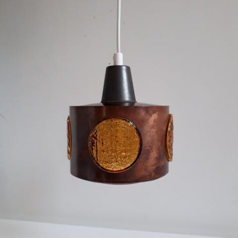 Flot pendl af finske Nanny Still Mckinney. Lampen er udformet i glas og syret kobber.
