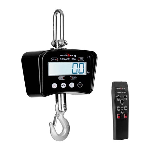 Kranvægt SBS-KW-1000/10G fra Steinberg Systems kan både anvendes stationært i et butikslokale og transporteres. Den er velegnet overalt hvor man ønsker at veje tunge genstande. Vægten imponerer med særligt præcise vejeresultater samt praktiske funktioner som tarering og addering. Vægten er forhåndskalibreret til at veje i kilogram (kg) og pund (lb). Vejeenheden kan nemt skiftes med et tryk på knappen. Hængevægten er udstyret med en beskyttelse mod overbelastning så brugeren bliver gjort opmærksom på, når den maksimale vægt er overskredet. Det førsteklasses kabinet er fremstillet i støbt aluminium som er ekstra robust og beskytter kranvægten mod skade. Sikkerhedskrogen af rustfrit stål er egnet til at veje genstande på op til 1,000 kg. Kranvægt SBS-KW-1000/10G bruger fire batterier type AA. Kranvægtens LCD-display har en høj opløsning og kan aflæses fra alle vinkler selv under dårlige lysforhold.