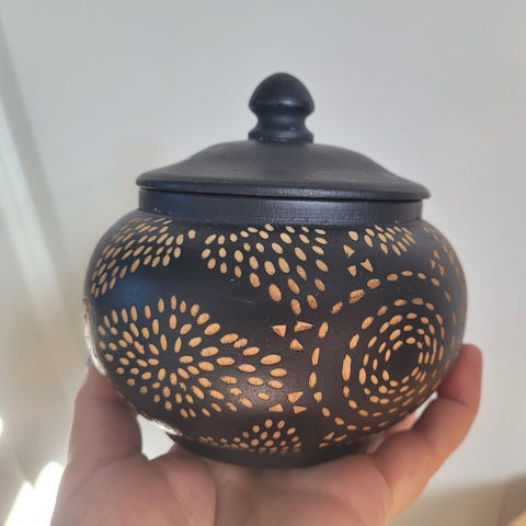 Super fin hånddrejet lågkrukke, limet men ser nu meget fin ud.