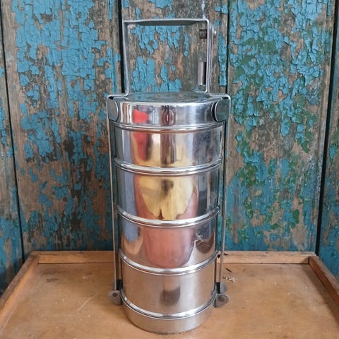 Rustfrit stål termisk isoleret stabelbar frokostboks / madbeholder med 4 beholdere. Tiffin