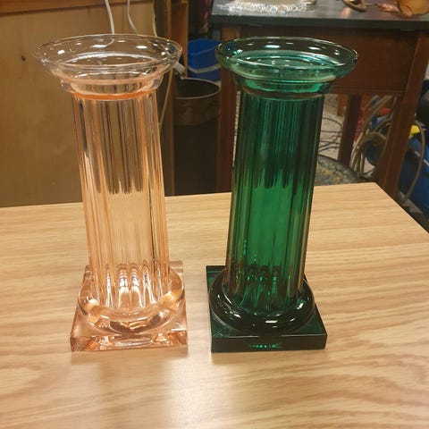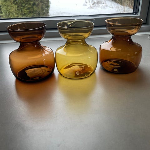 Spændende hyacintglas sæt med et transparent og blåt tårn.