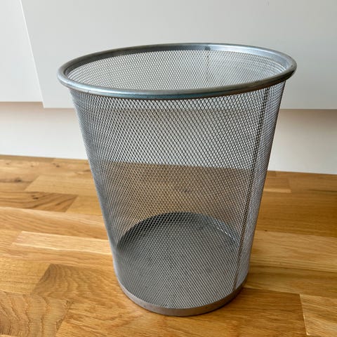 Super fed rustfri stål skraldespand med inderspand. De kreative kunne snilt plante en blomst i skålen øverst.