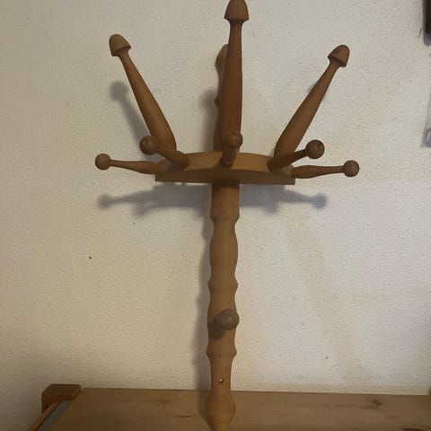 Knag i teaktræ og hvad der ligner messing.