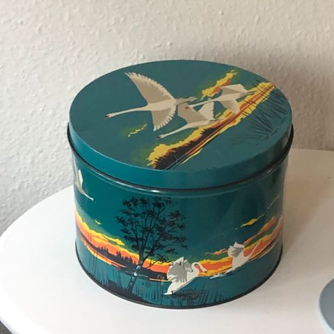 Dåser, Stor dekorativ dåse m. sommerfugle (retro), Der er her tale om en stor dekorativ retro dåse med sommerfugle motiv. Har lidt brugsspor.