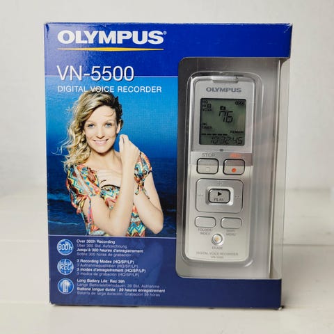 Olympus VN-5500 digital voice recorder / diktafon - helt ny, har kun lige været pakket ud af emballagen og testet, så det er faktisk mere eller mindre som ny.