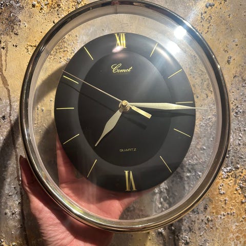 Flot vintage Space Age vækkeur fra Polaris, fremstillet i Kina med et karakteristisk mid-century design. Urets trekantede form og enkle, stilfulde urskive med guld- og sølvmarkeringer samt en rød sekundviser giver det et unikt udseende, der afspejler 1960'ernes og 1970'ernes futuristiske stil. Perfekt til samlere eller som en dekorativ detalje i dit hjem.