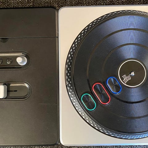 DJ Hero pladespiller-controlleren dykker dig ned i den autentiske DJ-kultur, så du kan scratche, cross-fade og beat-matche. Tilpas din blanding med forskellige effekter og samples, og forvandl en tilfældig tilskuer til festens midtpunkt.