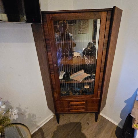 ⭐️- Vintage Hjørneskab i Teaktræ med Jalousilåger