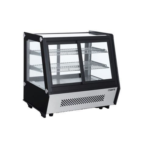 Elegant Display: Den dobbelte hærdede glasfront giver en klar og attraktiv udstillingsflade, der fremhæver kagernes skønhed og indbydende udseende. Med LED-indvendig belysning på to sider kan kagerne præsenteres på deres bedste og mest indbydende måde, hvilket tiltrækker kundernes opmærksomhed og appetit.