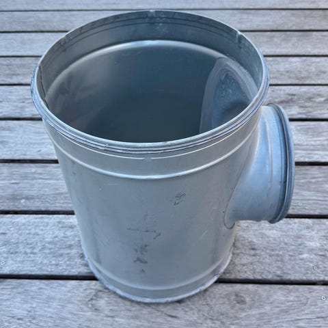 Denne rørdele, kendt som en "rektangulær overgang med rund tilslutning" eller "rektangulær tilslutning med rund adapter", bruges til at forbinde et rundt rør med en rektangulær kanal i et ventilationsanlæg. Med en rektangulær åbning på omkring ca 41x12 cm fungerer den som tilslutningen til den rektangulære kanal, mens den runde ende med en diameter på 120 mm fungerer som tilslutningen til det runde rør. Lavet af galvaniseret stål, sikrer denne rørdele effektiv og pålidelig luftstrøm mellem forskellige kanalformer i ventilationsanlægget.