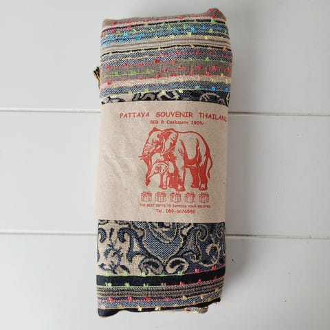 Tørklæde, Pashmina, Thailand, Farverigt mønster, 100 % Pashmina, Ubrugt