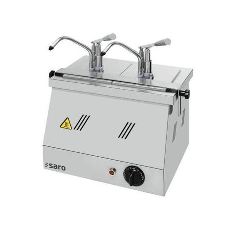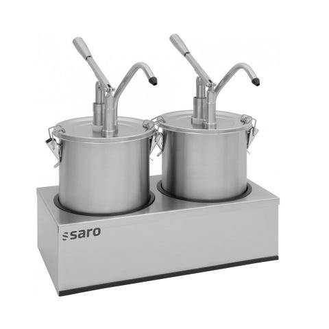 Denne sauce dispenser er tilgængelig i to versioner: 421-2500 med en kapacitet på 2×4,5 liter og 421-2505 med en kapacitet på 2×3 liter. Begge versioner er velegnede til tykkere saucer og giver dig mulighed for at have flere saucer klar til servering på samme tid.