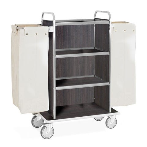 Vogn til linned i rustfrit stål, 4 niveauer, med 2 poser