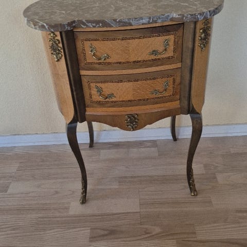 Til salgs er denne tidløse rokokokommode, der bringer både klassisk elegance og funktionalitet til dit hjem. Kommoden er fremstillet i massivt træ og prydet med fine detaljer, der er karakteristiske for rokokostilen, som de buede linjer og den smukke udskæring i træet. De originale messingbeslag og indlæg er velbevarede og tilføjer kommoden et eksklusivt og sofistikeret udseende.
