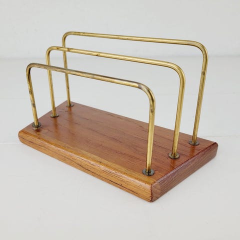 Fin gammel brevholder udformet i teaktræ og messing. I dag har de fleste ikke så mange breve som i 60érne, men den kan bruges som en virkelig smuk ladestation til ens mobiltelefon eller tablet