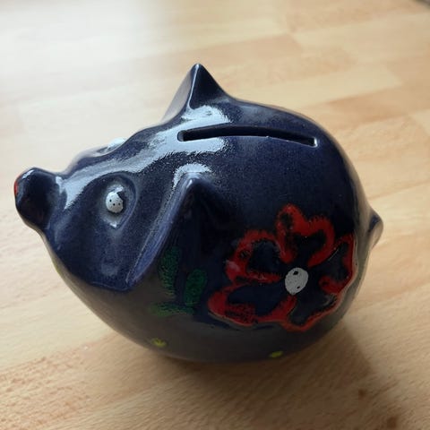 Sparegrisen er i flot stand og vil være en stilfuld tilføjelse til ethvert hjem. Perfekt som gave eller til dem, der samler på keramik eller sparegrise.