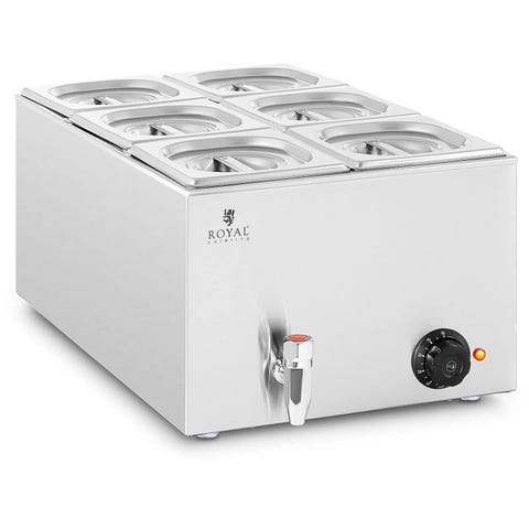 Bain marie gas RC-BMG6030 fra Royal Catering er beregnet til at holde maden på den rette serveringstemperatur over et længere tidsrum. Madvarmeren kan f.eks. bruges til kød, fisk, grøntsager, ris, kartofler eller sovs som holdes varm på den ønskede temperatur, uden at brænde på. Madvarmeren kan bruges som catering-udstyr, restaurantudstyr, til tag selv-borde og i kantiner og cafeteriaer.