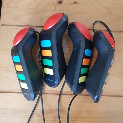 PlayStation 2 Buzzere giver en underholdende og interaktiv trivia-oplevelse. Buzzere er specielt designet trådløse kontrollere, der tillader spillerne at deltage i sjove quizzer og musikudfordringer på PlayStation 2-platformen. Med brug af Buzzere bliver spillet endnu mere engagerende, da spillere konkurrerer om at svare korrekt og score point. Dette sæt er ideelt til sociale sammenkomster og spilaftener, hvor deltagere kan teste deres musikalske viden og have det sjovt sammen.