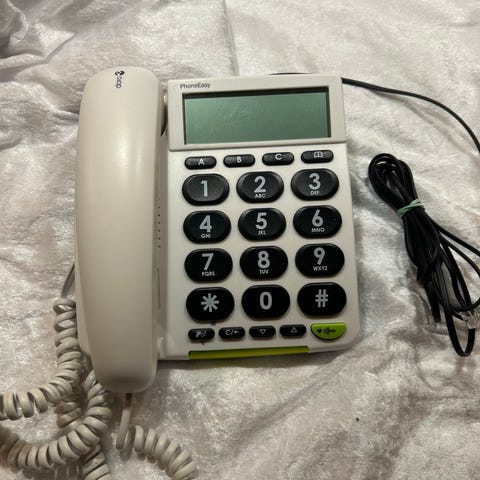 Doro 314C AlertEasy har store taster og et stort display for nem læsbarhed og en lysindikator, der lyser ved indgående opkald.