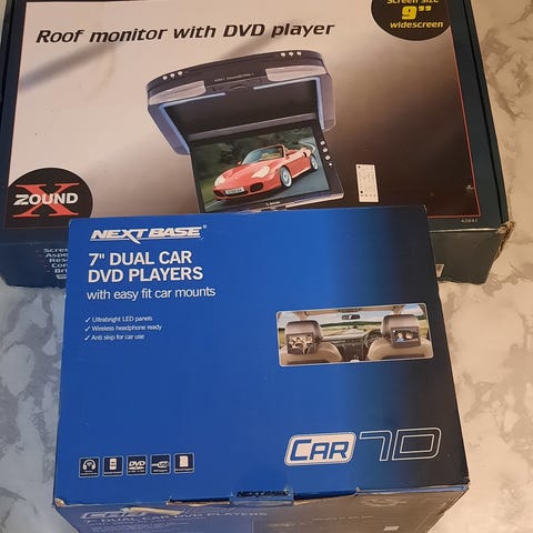 Sælger et komplet sæt bestående af en Philips PD7022 bærbar DVD afspiller (hovedenhed med indbygget DVD) samt en matchende ekstra skærm (slavemonitor), der kan kobles til hovedenheden. Ideelt til underholdning af to personer på bagsædet eller lignende.