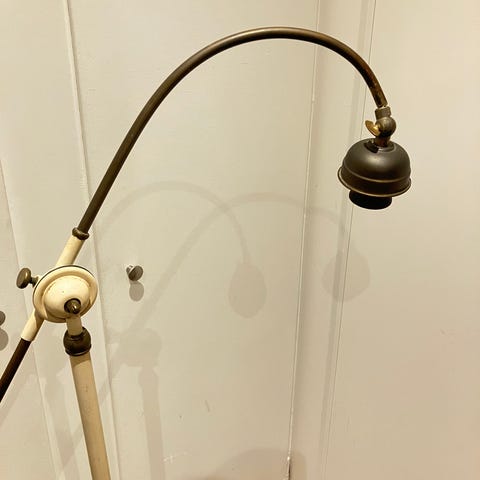 Lampen er brugt, men i god stand, med undtagelse af et lille skår nederst på glasskærmen, som ikke er synligt, når lampen er tændt. Messingen har også en lille misfarvning, men kan sandsynligvis pudses væk. Med dens rene linjer og slanke profil er denne lampe en perfekt kombination af form og funktion, der vil tilføje elegance til enhver moderne indretning.
