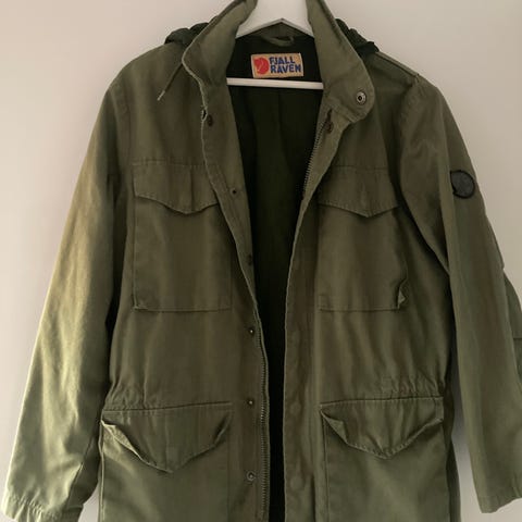 Sælger en Fjällräven jagtjakke, model 62031, i størrelse XL. Jakken er hovedsageligt lavet af bomuld og er brugt, men stadig i god stand.