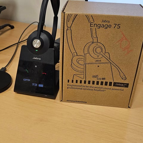 Sælger mit Jabra Engage 65 headset, kun headsettet uden base og oplader. Dette headset er ideelt for professionelle, der allerede har basen eller ønsker at bruge headsettet med en eksisterende enhed.