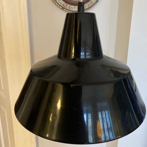 Værkstedspendel/arbejdslamper, i Originale hvid, med ny monteret ledning.