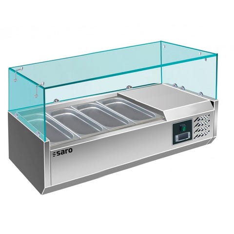 Bygget med rustfrit stål i huset og toppen i glas, skaber Produkt Z-1500 en enestående æstetik, der fanger øjet og fremhæver indholdet. Rustfrit stål er kendt for sin holdbarhed og hygiejniske egenskaber, der giver en pålidelig og let at rengøre overflade. Den glasbelagte top tilføjer en ekstra dimension af præsentation, hvilket gør dette køleopsat til et uundværligt valg i kombination med vores pizzaborde.