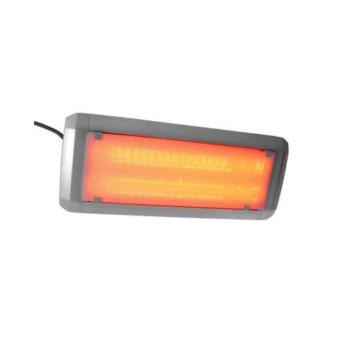 Dette infrarøde varmelegeme er designet til at modstå forskellige vejrforhold med sin IPX5-klassificering. Den elegante sølvfarve tilføjer et moderne touch til enhver udendørs indstilling og gør den til en stilfuld tilføjelse til din terrasse eller have.