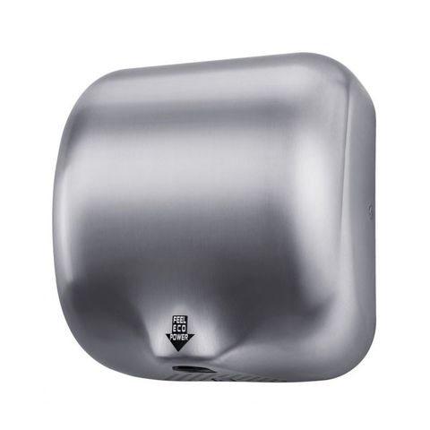 Denne håndtørrer er udstyret med et vandalismeresistent, robust og langlivet kabinet af hygiejnisk rustfrit stål. Håndtørreren er moderne designet med en profileret overflade der passer ind i enhver badeværelsesindretning. På denne model har man bevidst undgået knapper, kontrolpanel og lignende der kan gå i stykker, hvis det fejlbetjenes.