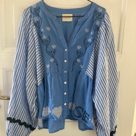 Str. S-M. Passer de fleste, afhængig af, hvor løs blusen ønskes. Se mål.