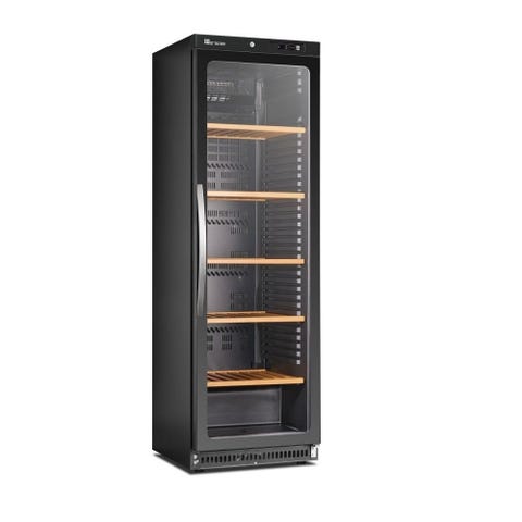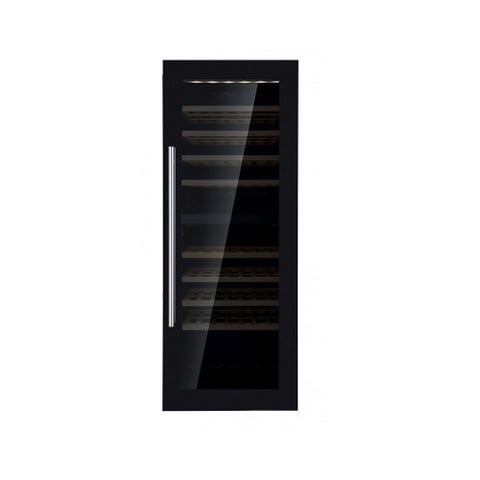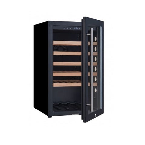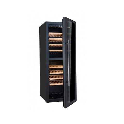 Vores vinkøleskabe er konstrueret med et stålkabinet, der er plastbelagt i en elegant sort farve. Den låsbare dør tilføjer en ekstra beskyttelse til dine dyrebare vine, mens det indvendige interiør også er belagt med samme holdbare materiale.