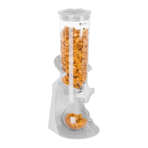 Morgenmads-dispenser RCCS-4.5L/3W fra Royal Catering monteres på væggen og er beregnet som tilbehør til morgenmadsbuffeten på hotel, fjeldstue, café eller restaurant. Morgenmads-dispenseren kan f.eks. bruges som mysli-dispenser, cornflakes-dispenser samt til mælk og yoghurt. De tre beholdere er gennemsigtige så indholdet er synligt fra alle vinkler, hvilket hjælper gæsterne ved tag selv-bordet, samtidig med at køkkenpersonalet kan se, hvornår det er tid at fylde op igen.