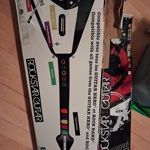 2 stk Guitarhero guitarer og 2 controllere trådløs. Batterilåg mangler til 1 guitar. 150 kr pr guitar + controller. I alt 300 kr.