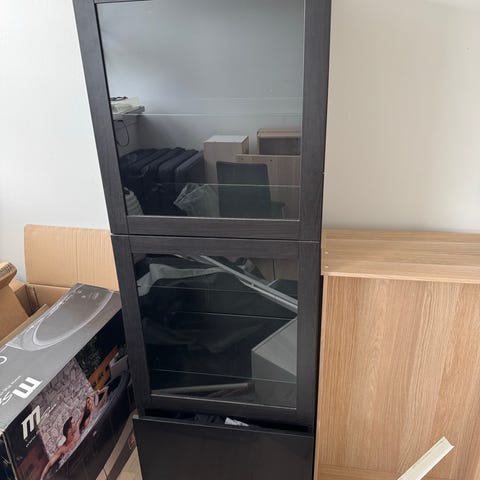 Meget fint hyldeskab ish. Bagpå er der hængsler til at sætte den op med se billederne.