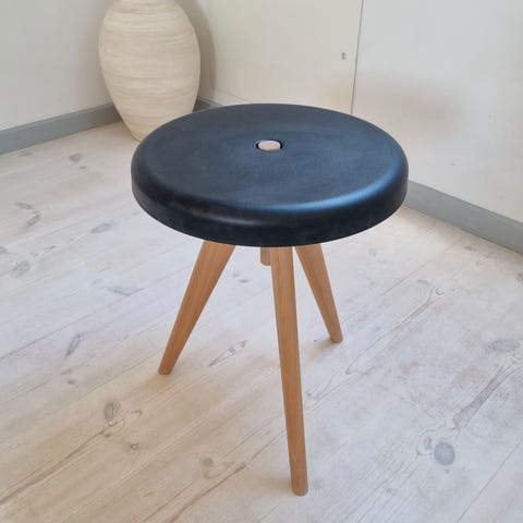 2 sidde-/ståtaburetter haves. Min. siddehøjde 58 cm, Max siddehøjde 73 cm. Kan vippe i bunden, meget behagelige. Virker upåklageligt. Den ene har plastikcover løsnet sig (se billede). Kan klares med lim.