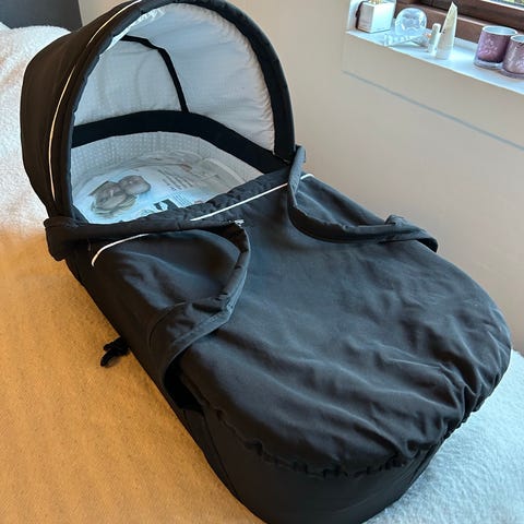 Liftkasse til barnevogn 80 cm. farve mørk blå med madras, mrk. Emmaljunga