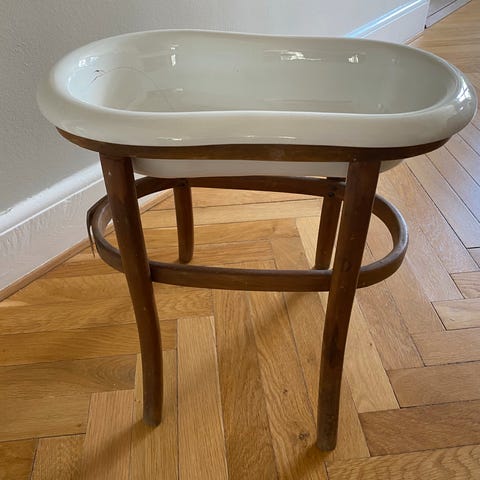 Dukkemøbler, Badekar og skråstol, Badekar til dukke samt skråstol (passer til mellem eller lille dukke).