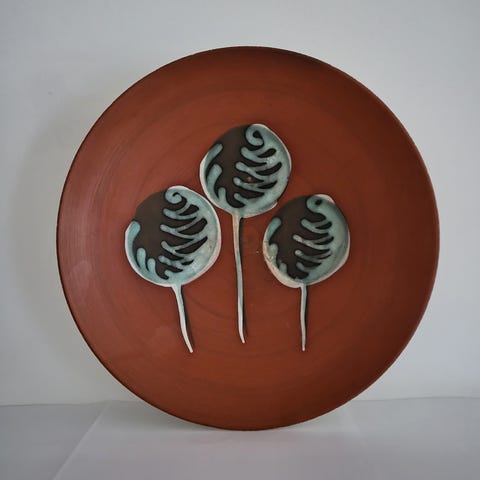 Stort svensk keramik fad af Marian Zawadsky med titlen "Deform" fra Tilgmans keramik fra 1960. Dia.: 35cm.