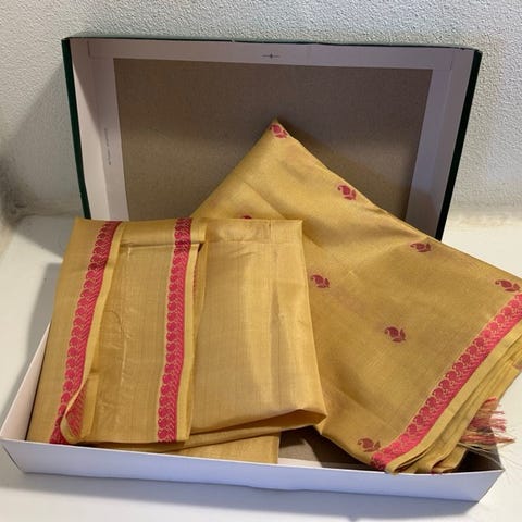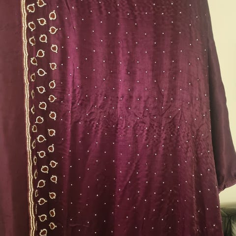 Kan bruges som sari, som dug, gardin eller man kan sy noget helt andet af den.