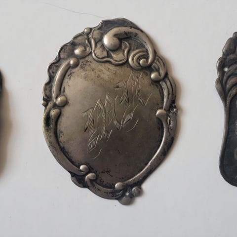 Stor samling af antikke frakkemærker, fortrinsvis i sølv sælges samlet. Det er ca. 106 stk. frakkemærker. Alle i god brugt stand.