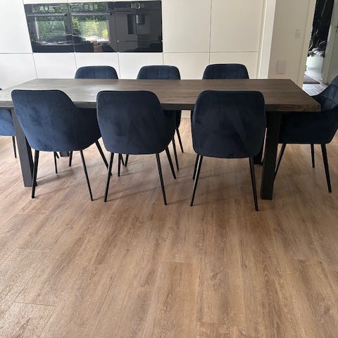 Spisebord m/stole, Flot plankebord med 8 stole.