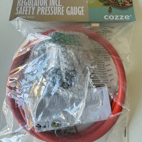 Helt nyt, ubrugt gasregulatorsæt med gummislange. Købt i Jem & Fix i marts 2024. Fik ikke brug for det alligevel og sælges derfor.
