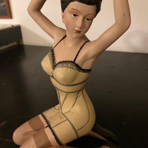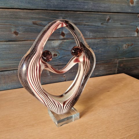 Flot kvinde i klart glas med sort/hvid effekt som tøj og fantastisk rød hat. Label Krath & Co., Danmark - perfekt stand. Højde 29 cm, bredest 8 cm. solid og står godt.