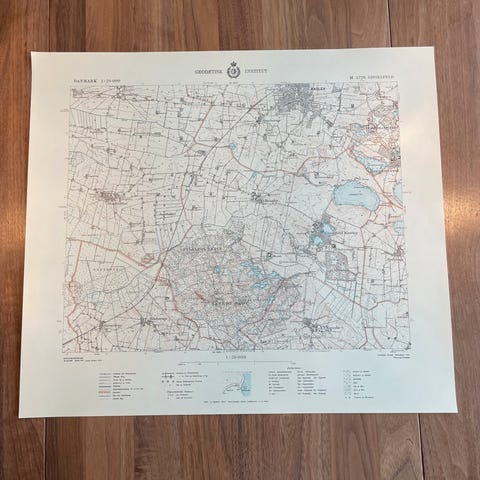 Vægkort fra 1952: Hesselø (perfekt stand)
